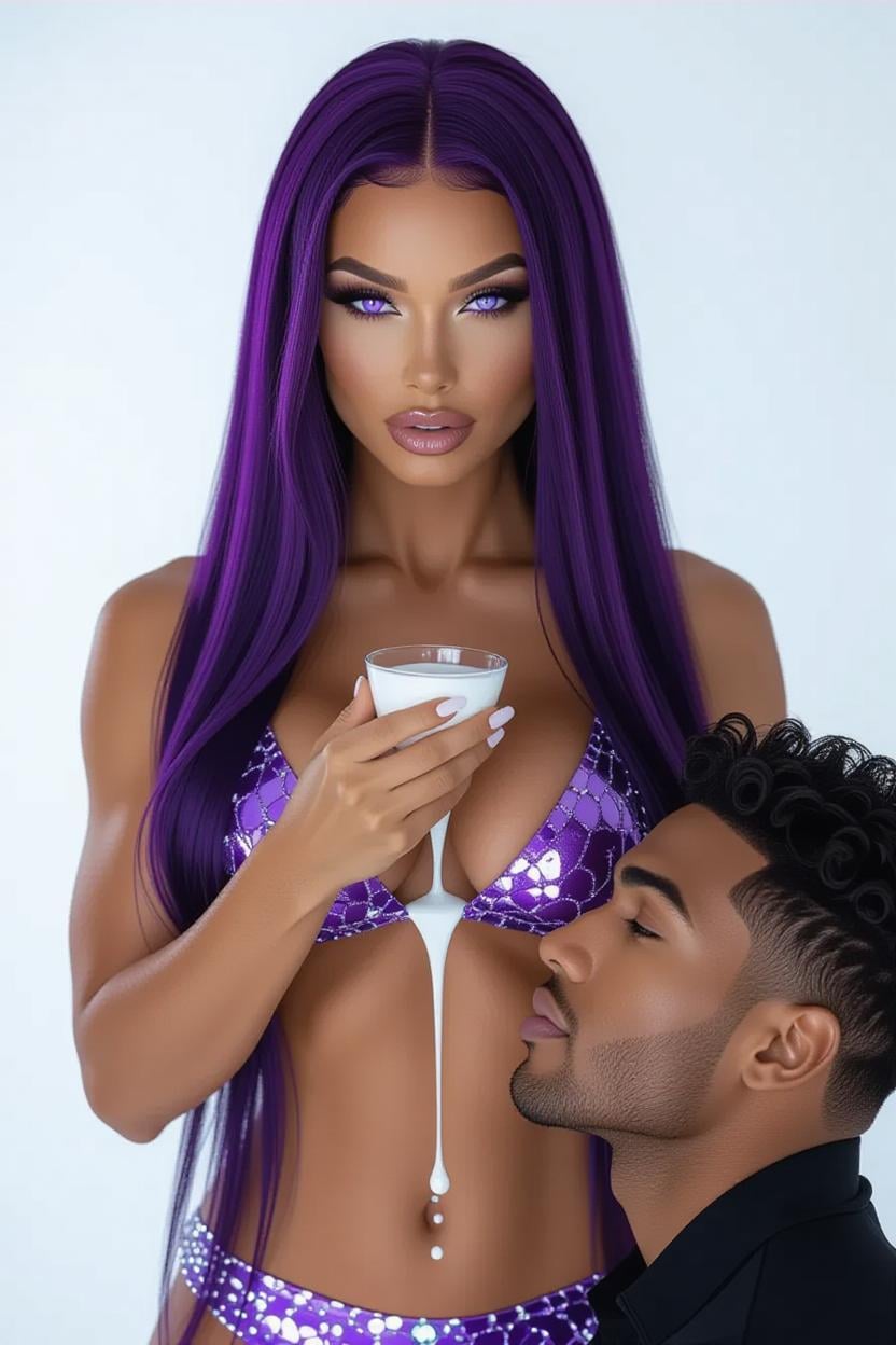 A hot seductive purple hair muscle mommy