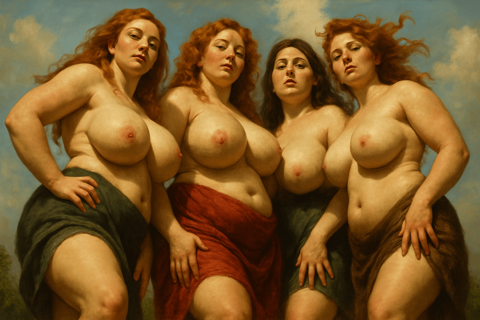 huge boobs begging blouse muscular flashing tits woman irish created by AI