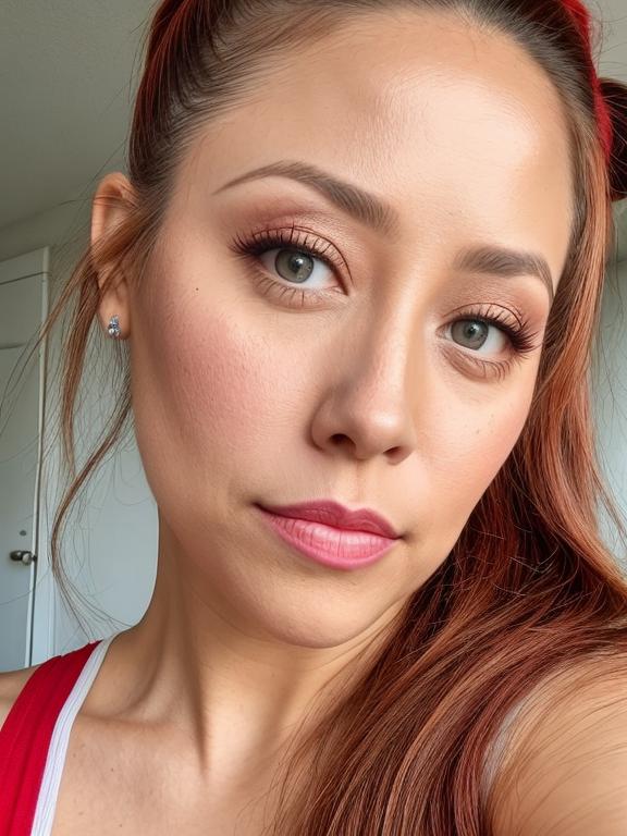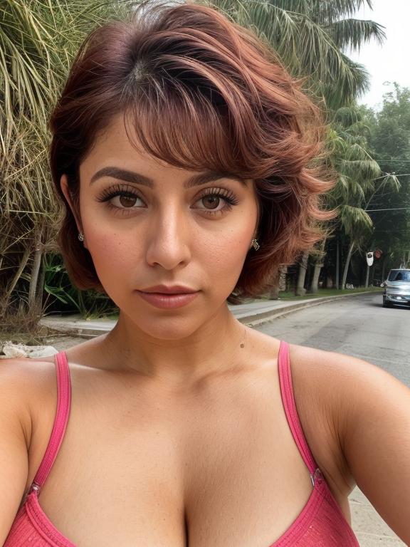 Chichen Itza, Mexico woman pop star surprised purple hair push-up bra spotlight created by AI